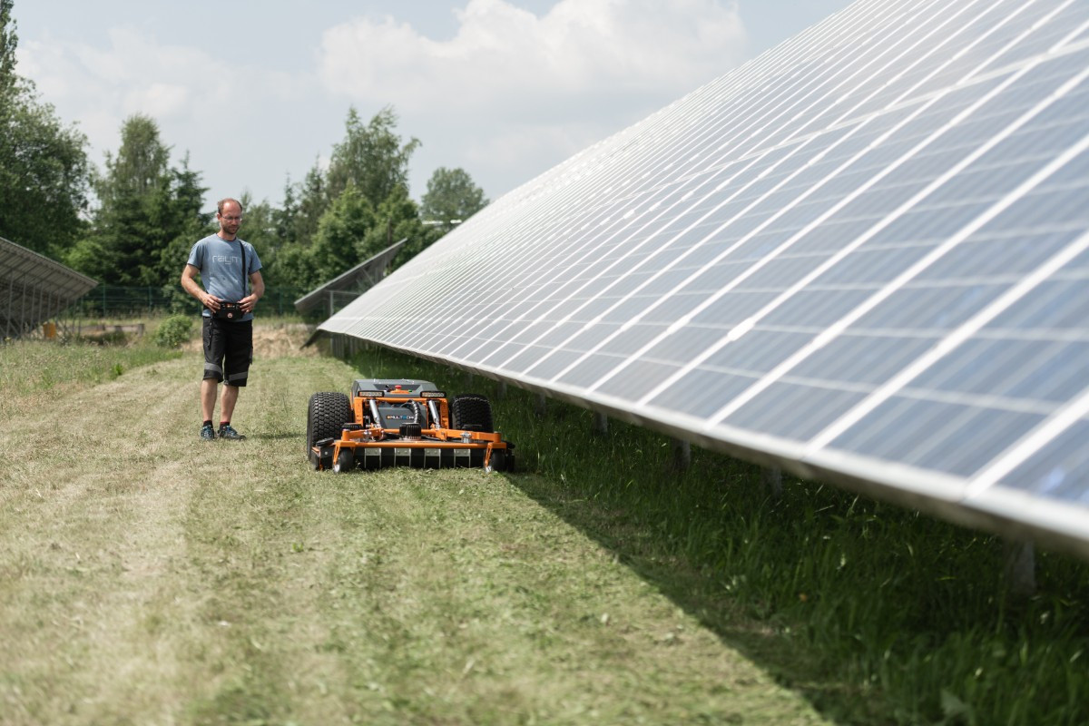 Tractors or conventional mowers are often inefficient and costly in PV plants. Manual cutting is slow, labor-intensive, and economically unsustainable. Combustion-powered machines bring high operating costs, intensive maintenance requirements, noise, and increased fire risk.